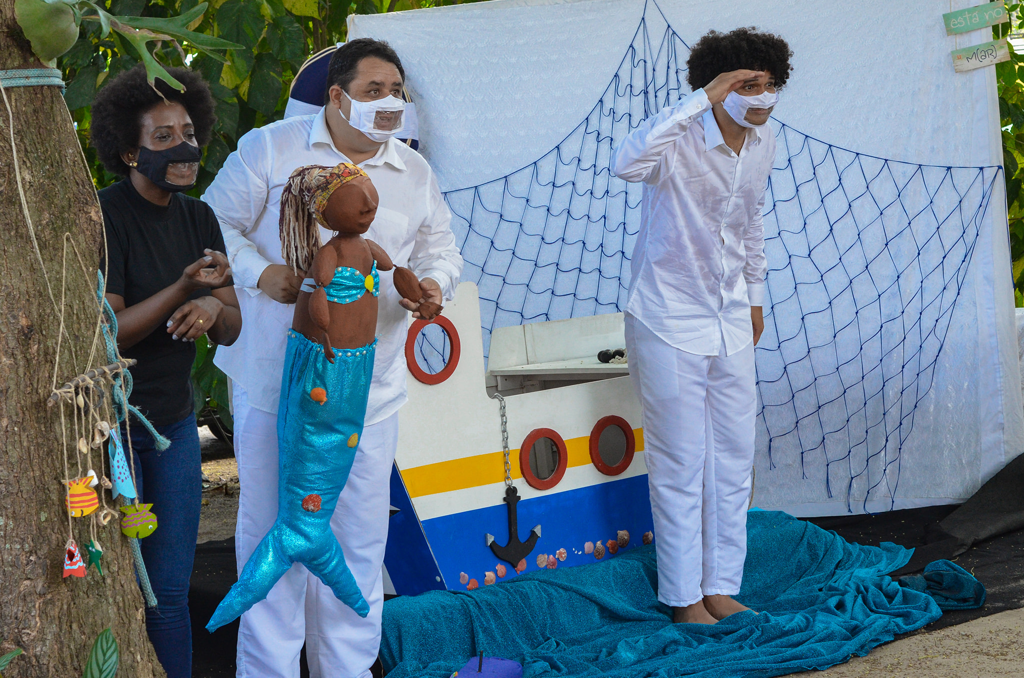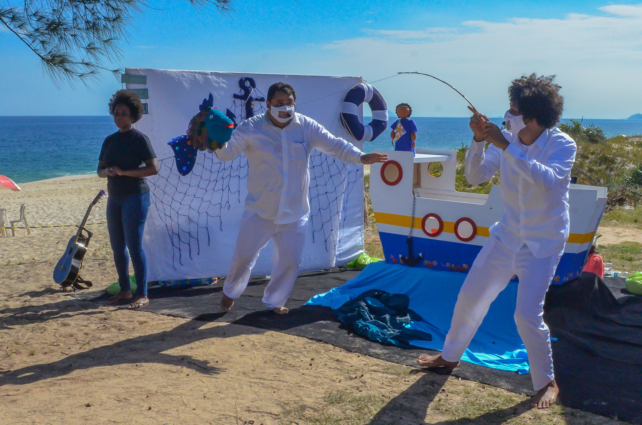 Governo Federal, Governo do Estado do Rio de Janeiro, Secretaria de Estado de Cultura e Economia Criativa do Rio de Janeiro, através da Lei Aldir Blanc apresentam ”Sobre o Mar – Teatro para todas as idades pela preservação da cultura caiçara e ribeirinha“.
