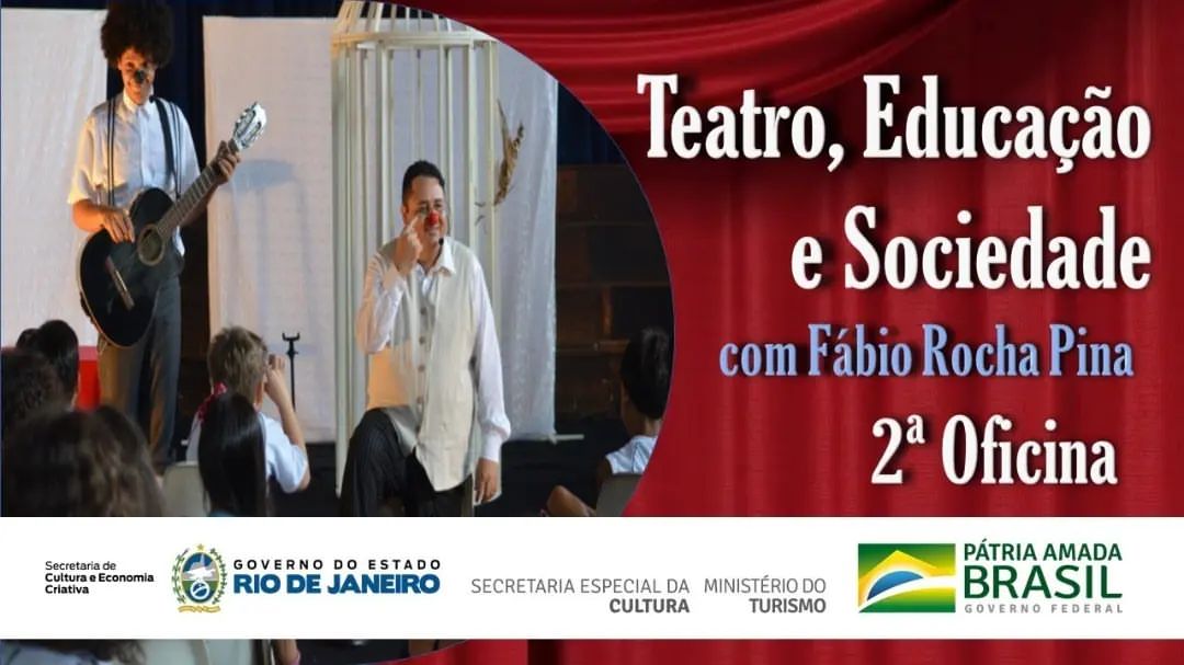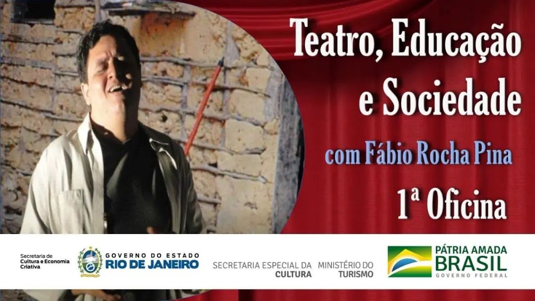 Governo Federal, Governo do Estado do Rio de Janeiro, Secretaria de Estado de Cultura e Economia Criativa do Rio de Janeiro, através da Lei Aldir Blanc apresentam “Teatro, Educação e Sociedade“, com Fábio Rocha Pina.