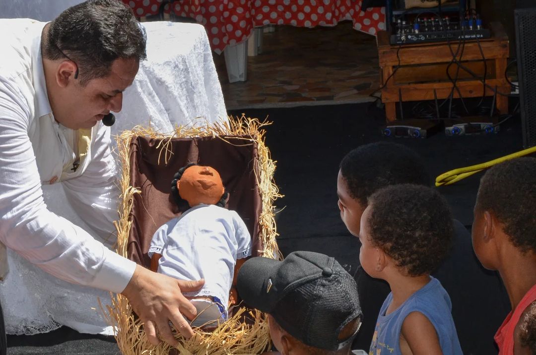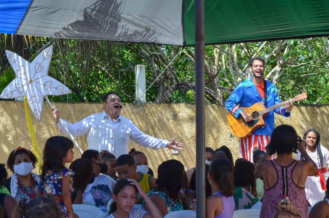 Nesta manhã do dia 05 de Dezembro de 2022 levamos nossa Folia para a Casa de Acolhimento Clara e Miguel em Itaipú. Lona levantada para uma apresentação de “Auto da Estrela“, um emocionante encontro de teatro com as famílias da Ação Social LilaeRO .