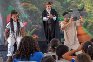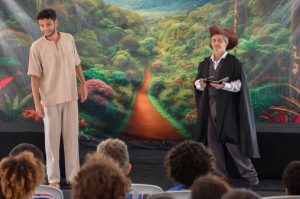 Na última segunda-feira, 8 de abril, o Teatralmente realizou duas sessões gratuitas do espetáculo “Caminhos de Darwin” na Lona Acústica e Cultural Beth Carvalho, localizada no distrito de Itaipuaçu, em Maricá – RJ. O evento foi organizado pelo Instituto Floresta Darcy Ribeiro – AmaDarcy.